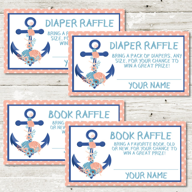 Gender Neutral Nautical Anchor Diaper Raffle Tickets